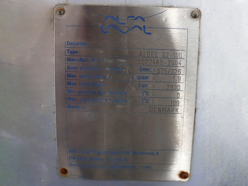 Used Alfa Laval screw contrifuge ALDEC G2-100
