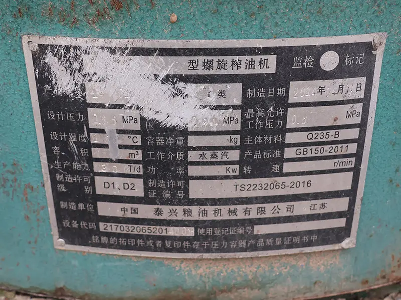 Es un equipo de recipiente a presión tipo I, fabricado por Taixing Grain and Oil Machinery Co., Ltd. Tiene las calificaciones de fabricación para recipientes a presión D1 y D2 y es adecuado para escenarios de producción a gran escala de empresas procesadoras de granos y aceite.